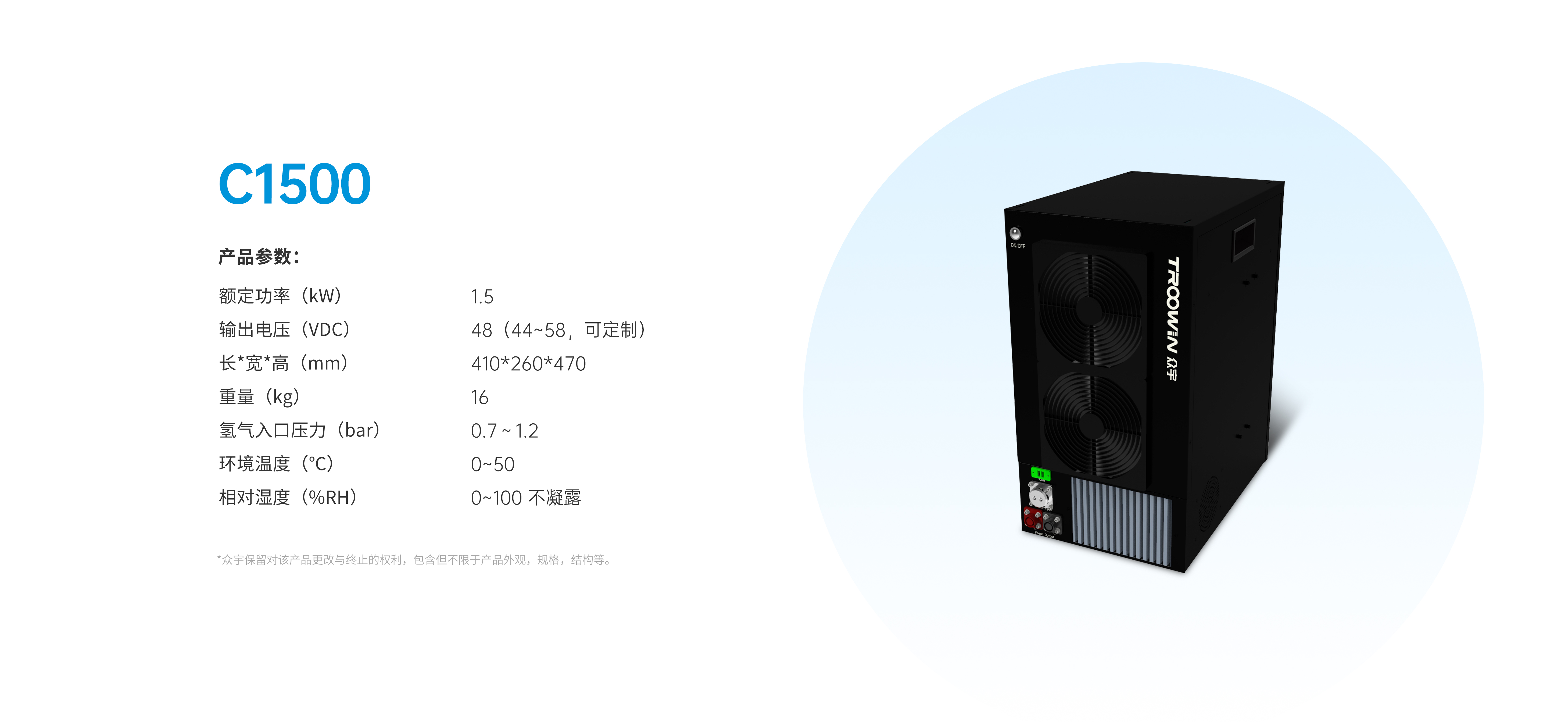 眾宇自主設(shè)計(jì)、研發(fā)、生產(chǎn)的風(fēng)冷燃料電池系統(tǒng),可覆蓋5kW以內(nèi)的功率需求,適用于通信基站供電、電力匱乏地區(qū)的生活用電、家用儲(chǔ)能、小型動(dòng)力等領(lǐng)域,可按需求定制。