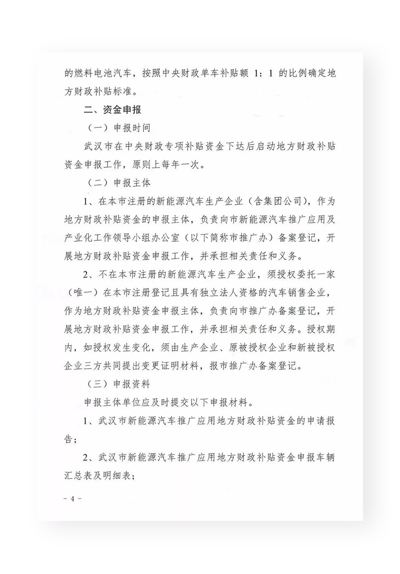 【政策快報】武漢市發布2018年新能源汽車補貼細則,燃料電池汽車按照中央財政單車補貼額1:1的比例確定地方財政補貼
