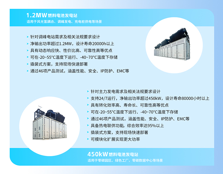 此次交付的1.65MW燃料電池發電站包含1.2MW450kW兩套系統,是基于眾宇自主研發的G4電堆平臺,針對不同應用場景分別開發的兩個產品,可為用戶提供高效、可靠、穩定和環保的電力保障。